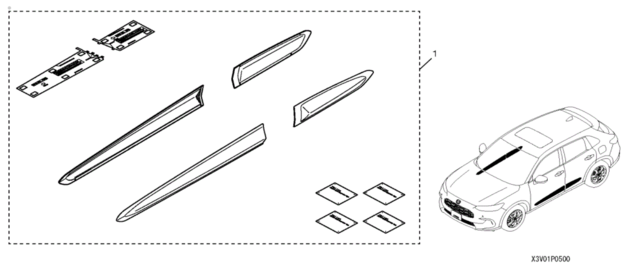 - Notes: Part listed is a dealer installed accessory kit that includes all body side moldings.
